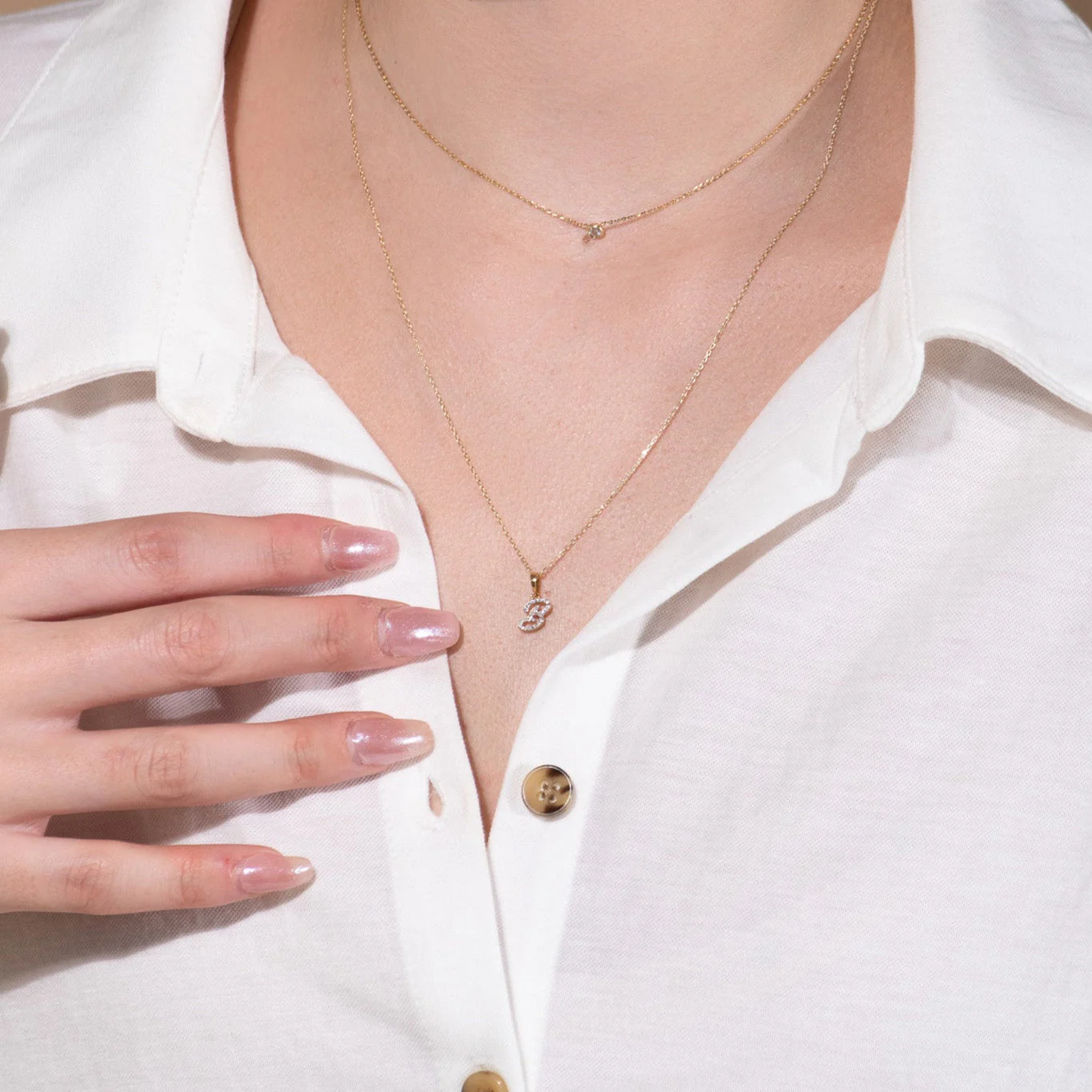 Yellow Gold Cursive Diamond Initial Necklace – B