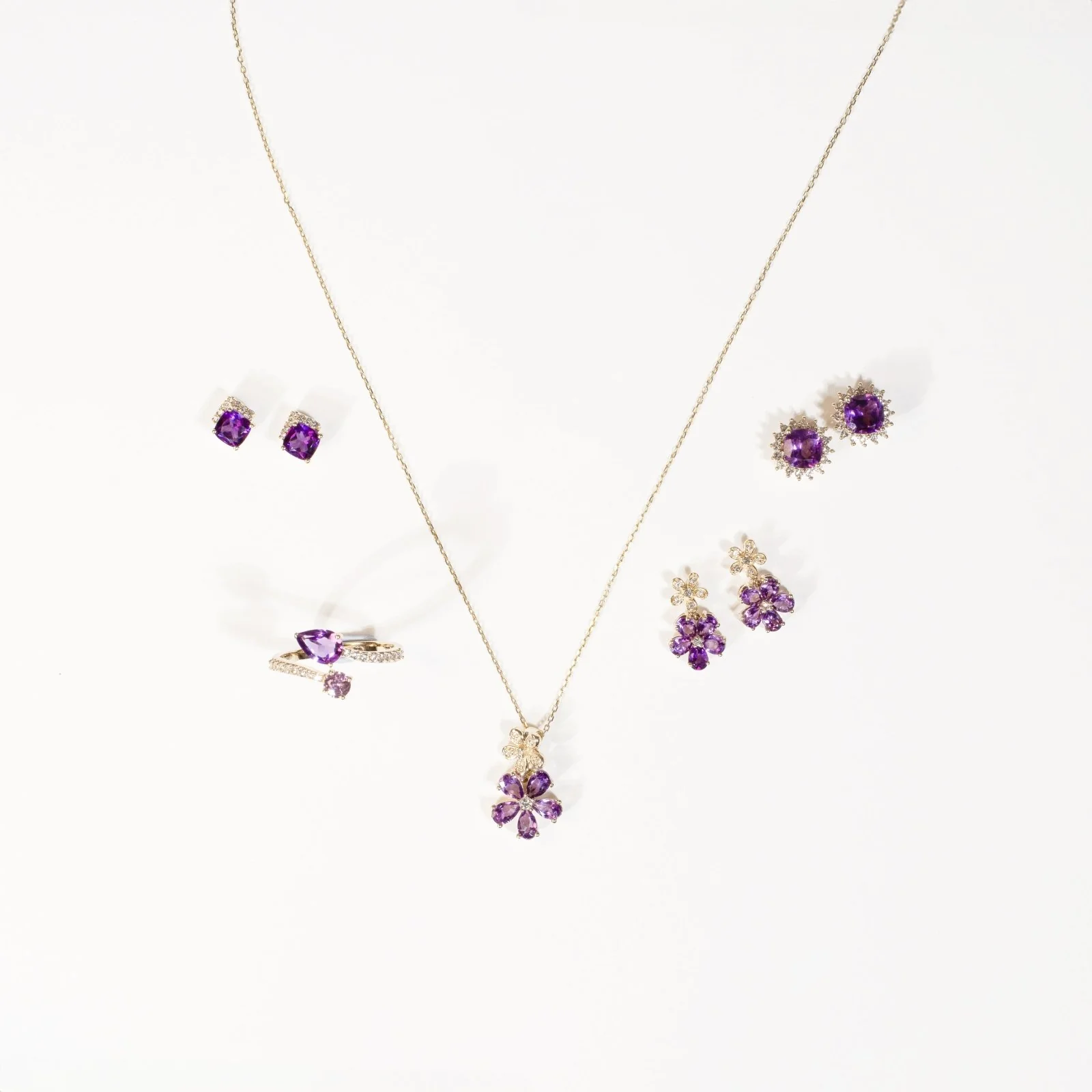Yellow Gold Amethyst Sapphire Pavé Earring