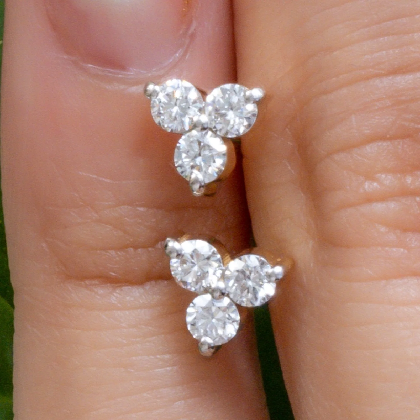 Rose Gold Diamond Trinity Cluster Flat Back Earring