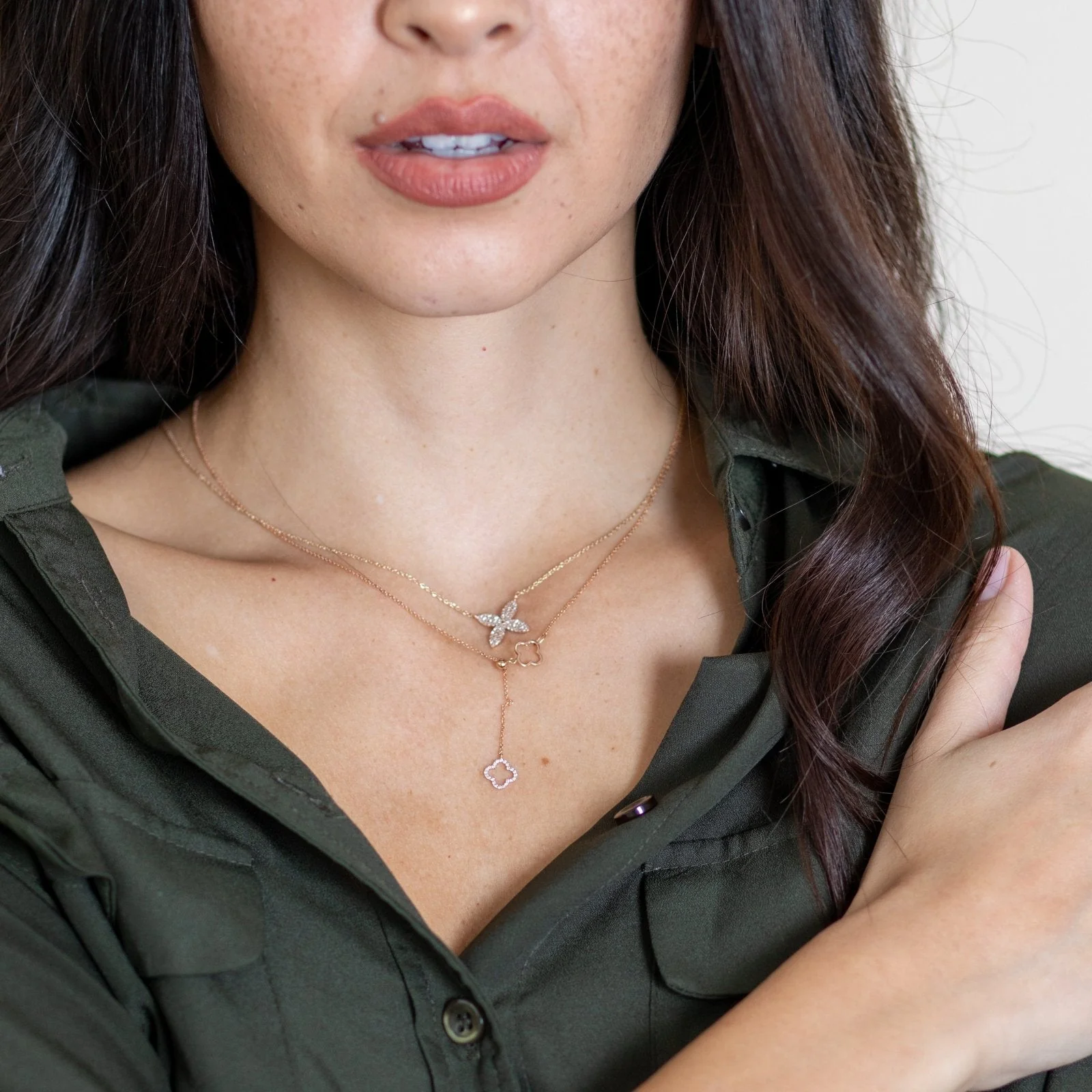 Yellow Gold Four Petal Diamond Pavé Flower Necklace